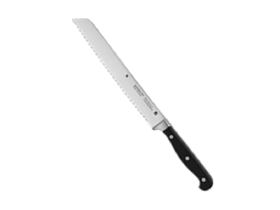 Das Brotmesser eignet sich, wie der Name schon sagt, vor allem zum Schneiden von Brot. Durch seine lange Klinge kann es jegliches Brot kinderleicht zerschneiden und der Wellenschliff der Klinge verhindert das Krümeln der Brotscheiben. Es eignet sich jedoch nicht nur zum Schneiden von Brot, auch Obst mit einer harten Schale kann mit diesem Messer schnell zerteilt werden.